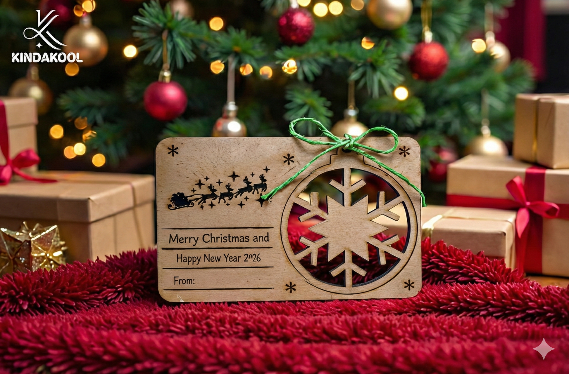 Send a greeting that lasts beyond the season with this unique Wooden Christmas Card. Far more than just paper, this keepsake features a beautiful laser-engraved design and a built-in gift.