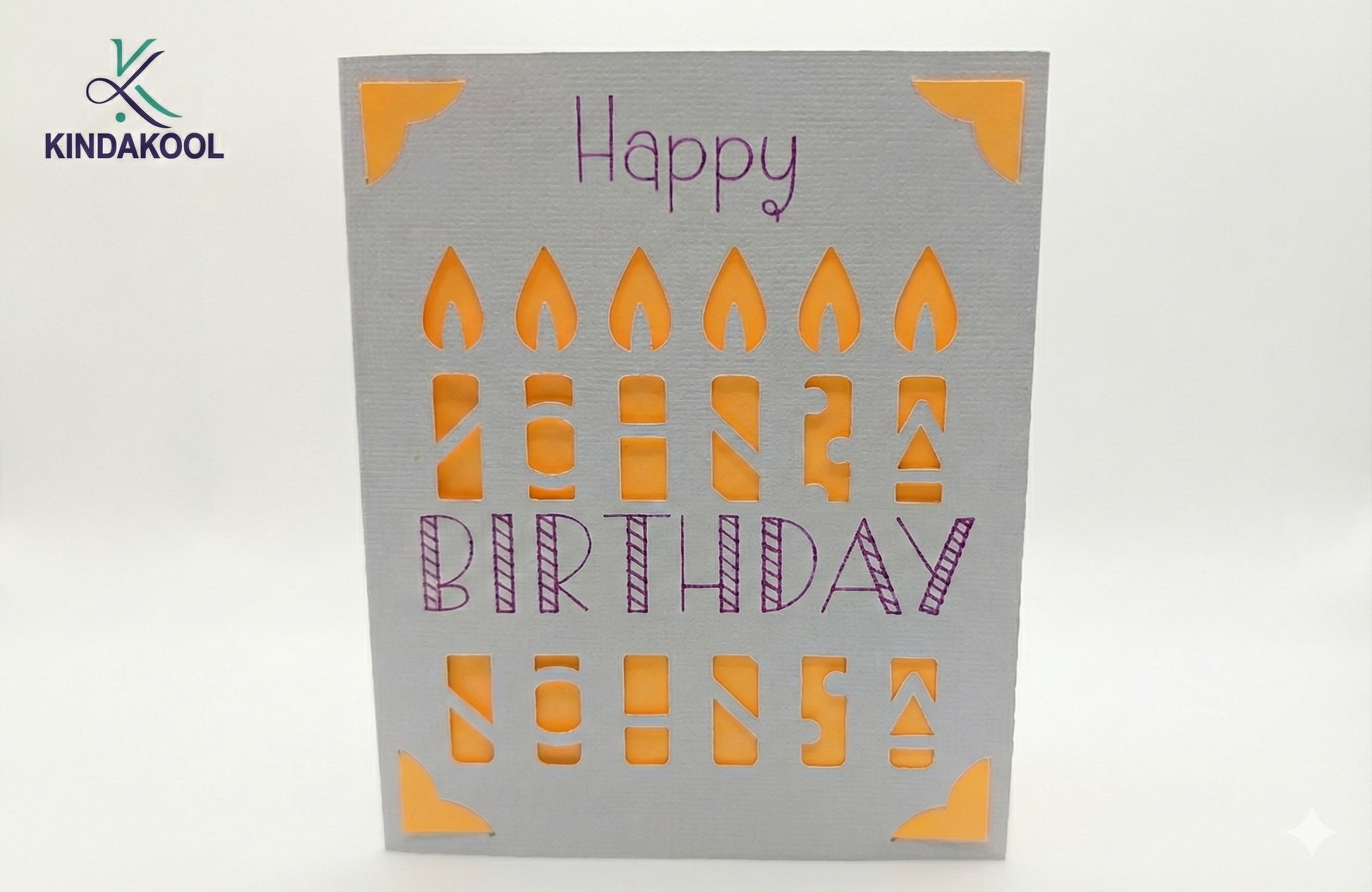 Festive Design: The front is intricately cut with a row of stylized candles featuring unique geometric patterns and flickering flames.