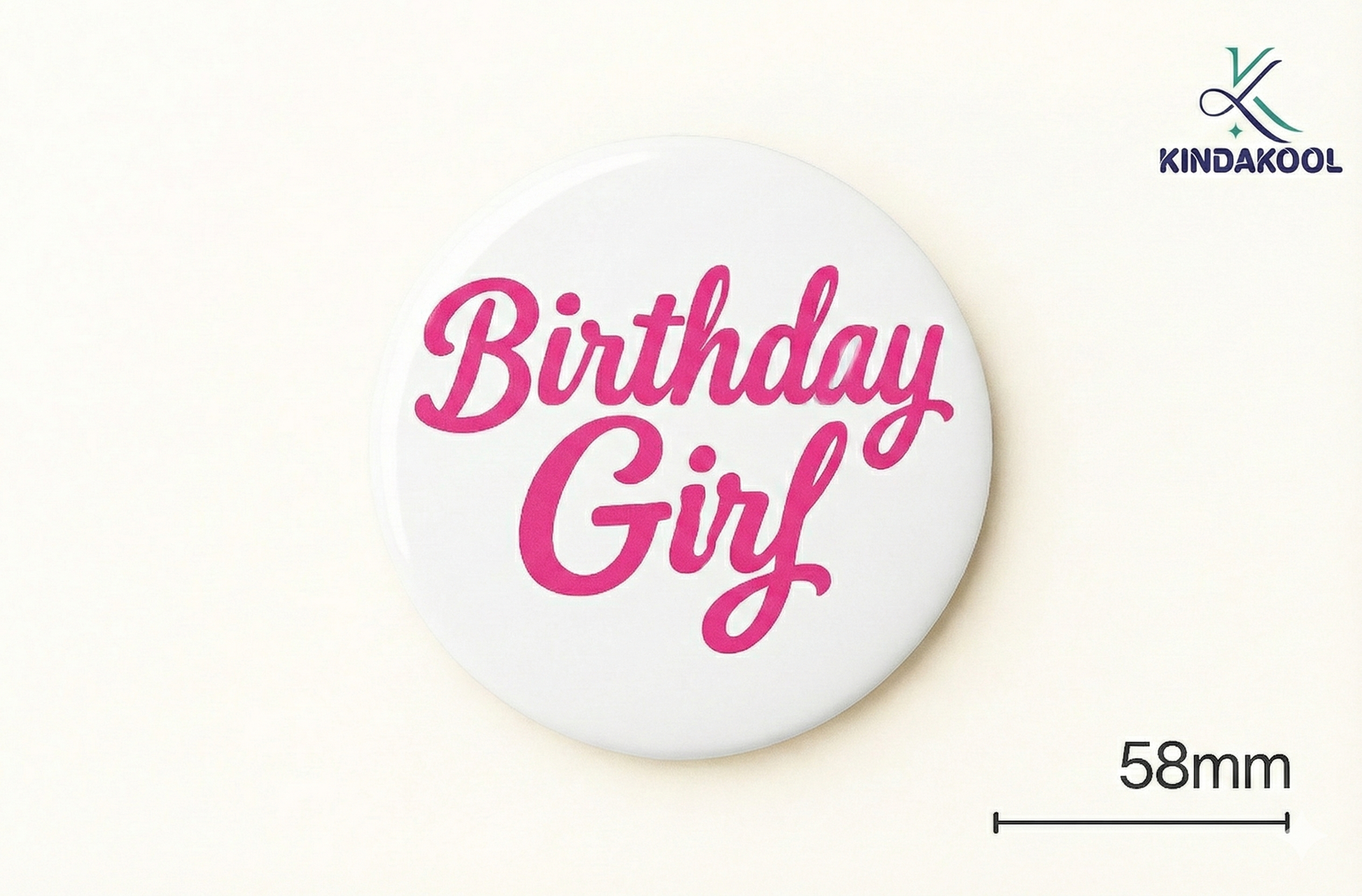 Make her feel like the star of the show! This vibrant "Birthday Girl" badge features fun pink script on a crisp white background. It is a cute and classic accessory to ensure everyone knows exactly whose special day it is.
